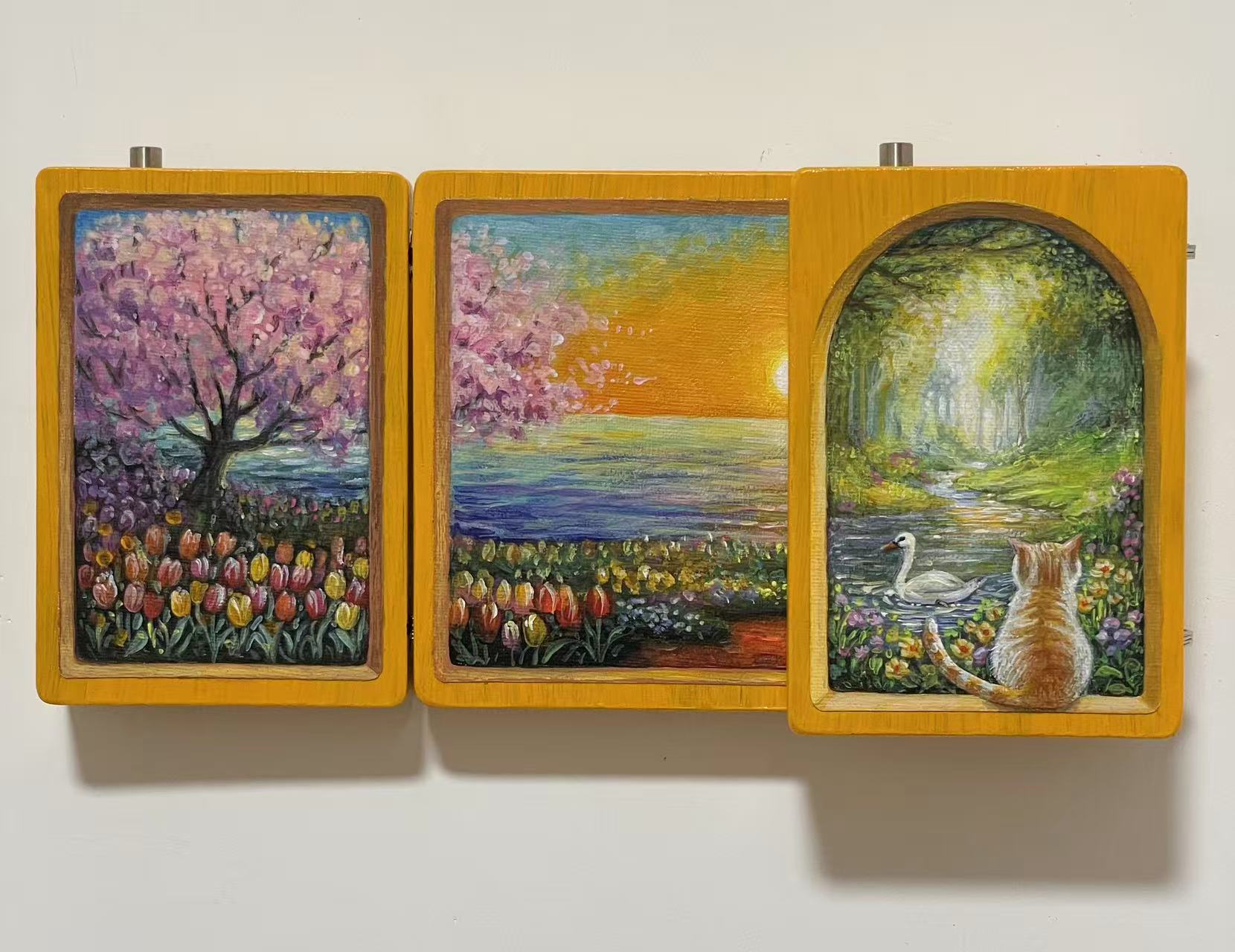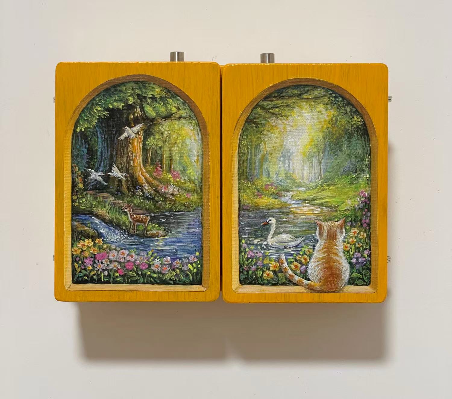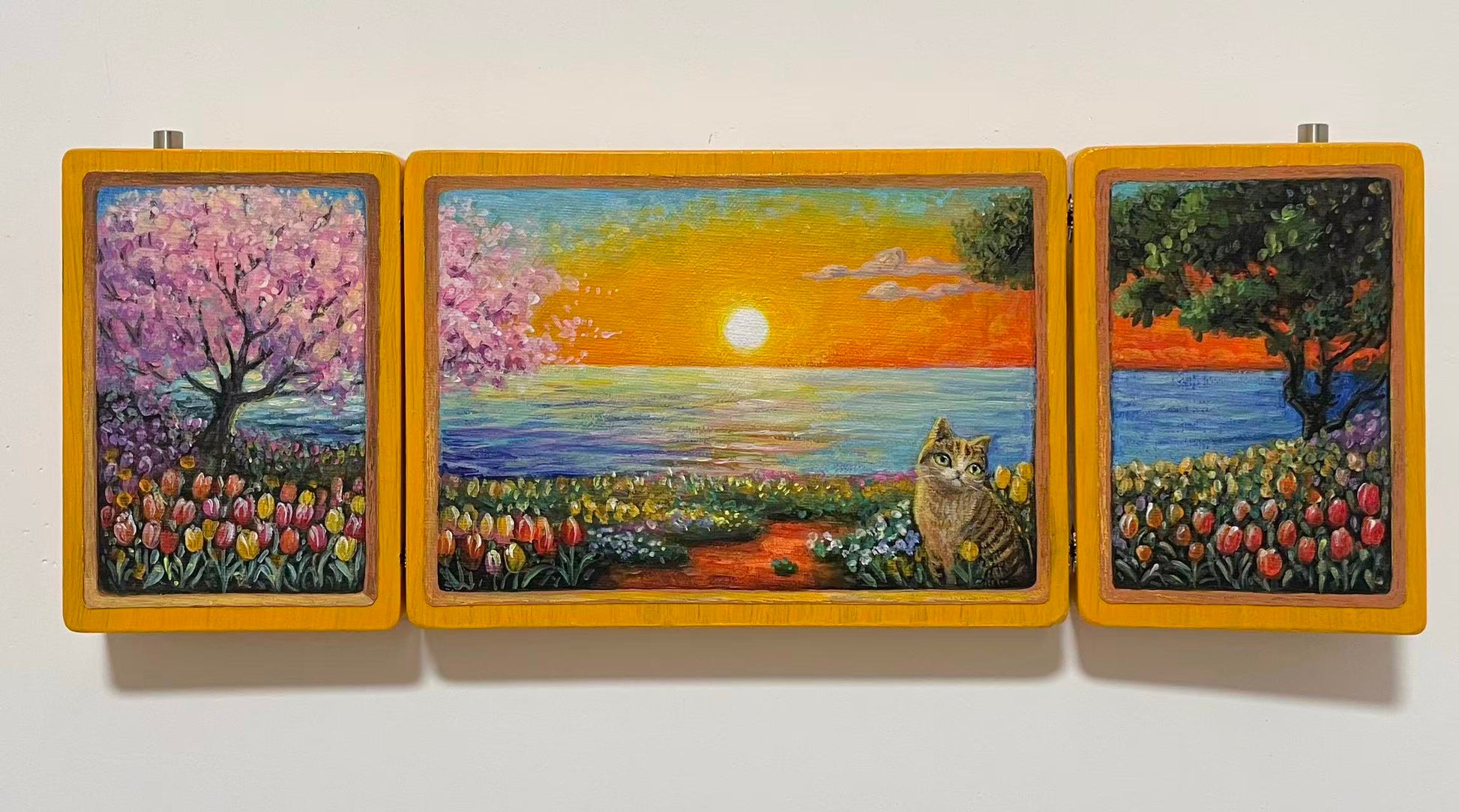 密林中的欢乐汇入蓝色的大海,橘色的天空很温暖